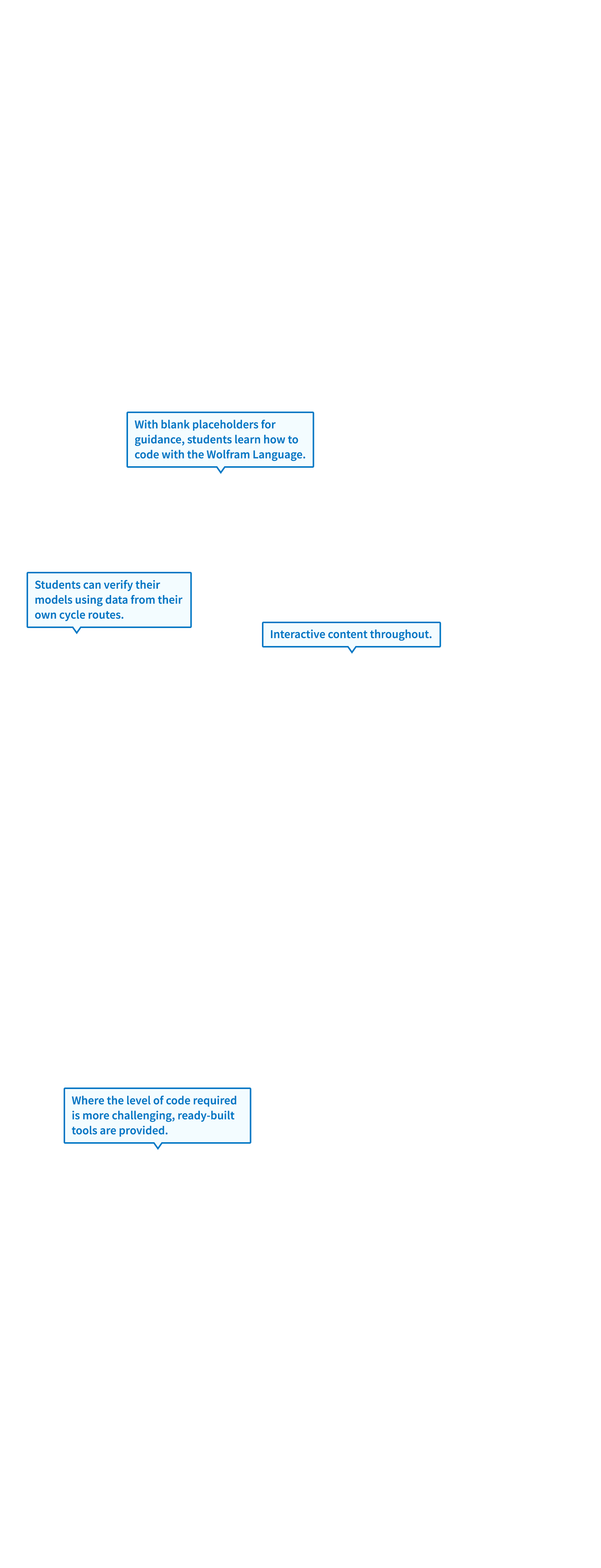 Learners have access to industry-standard computation tools and are not restricted to the templates given in the materials—the learner can enter and run Wolfram Language code at any point within the resource.