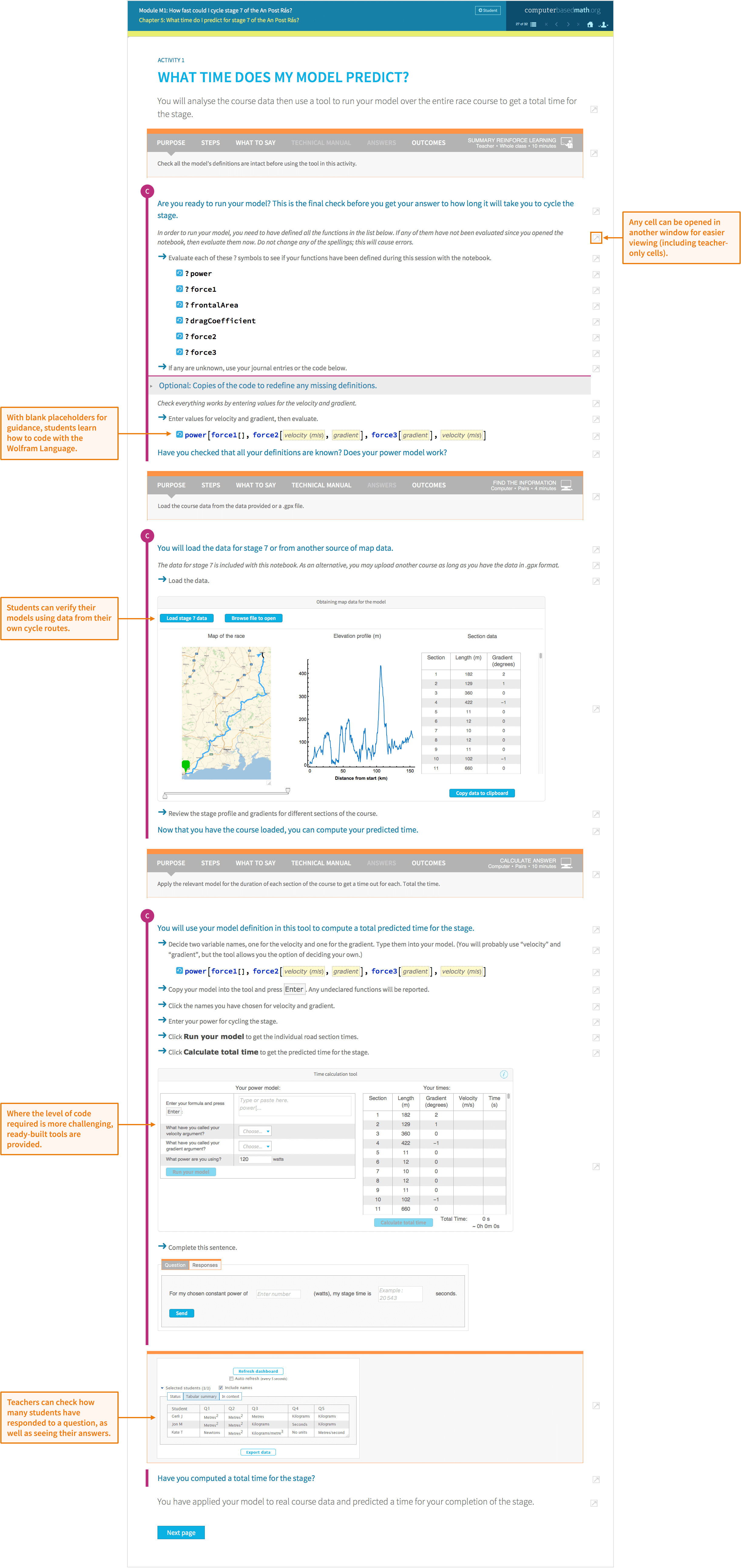 As learners use the computer to do the calculating, previously out-of-reach concepts (due to their calculation complexity) become accessible at an earlier stage. Learners have a full set of cutting-edge tools available to them and are guided toward stable choices in the narrative, often through the use of primers.
